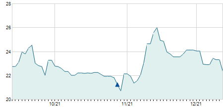 Giá đóng cửa ngày 27/12/2021