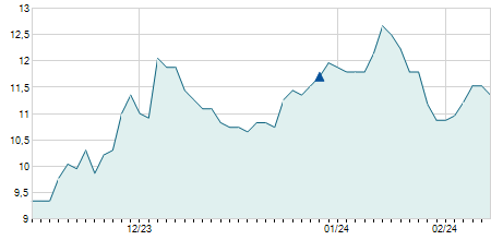 -0,30 / -2,61%