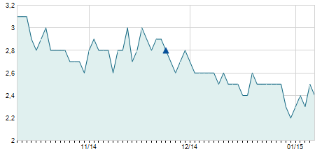 | 14/09/2020 | -0,70 / -2,62% | 26,00 | 26,10 | 26,00 | 26,00 | 26,01 | 22,31 | 3.100 |   |