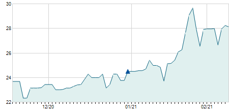 Giá đóng cửa ngày 28/12/2021