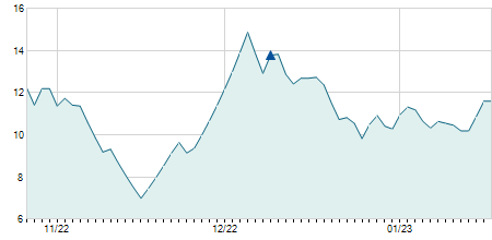 | 12/12/2023 | +1,90 / +7,31% | 27,00 | 27,90 | 26,20 | 27,90 | 27,28 | 25,74 | 2.100 |   |