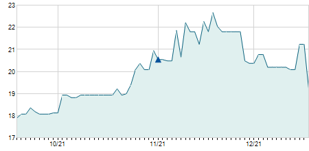 | 19/10/2021 | 0,00 / 0,00% | 4,10 | 4,40 | 3,90 | 4,10 | 4,10 | 4,10 | 1.057.900 |   |