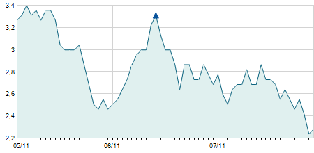 | 11/01/2022 | -0,40 / -3,96% | 10,00 | 10,40 | 9,40 | 9,70 | 9,70 | 9,70 | 1.410.200 |   |