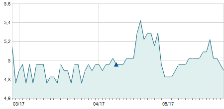 | 09/03/2022 | -0,10 / -1,49% | 6,80 | 6,80 | 6,50 | 6,60 | 6,60 | 6,60 | 40.000 |   |