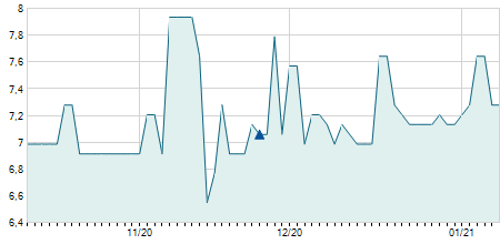 | 21/04/2023 | +2,00 / +6,90% | 31,00 | 31,00 | 31,00 | 31,00 | 31,00 | 26,79 | 900 |   |