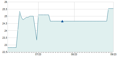 | 30/09/2021 | 0,00 / 0,00% | 27,50 | 27,50 | 27,50 | 27,50 | 27,50 | 22,96 | 0 |   |