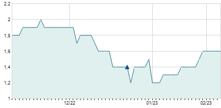 | 28/12/2022 | 0,00 / 0,00% | 24,30 | 24,30 | 24,30 | 24,30 | 24,30 | 21,00 | 0 |   |