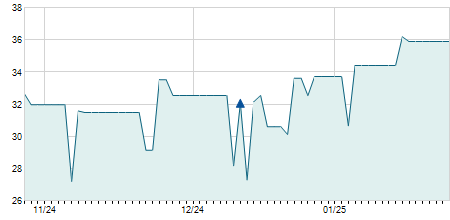 | 02/03/2022 | +2,20 / +6,98% | 33,70 | 33,70 | 33,70 | 33,70 | 33,70 | 28,14 | 500 |   |