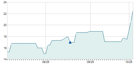 | 25/05/2010 | -0,50 / -1,99% | 22,70 | 25,80 | 22,60 | 24,60 | 24,60 | 14,52 | 89.000 |   |