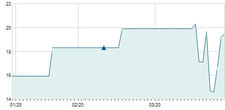 | 26/06/2023 | +0,90 / +7,56% | 11,90 | 13,50 | 11,90 | 12,80 | 13,00 | 11,95 | 22.500 |   |