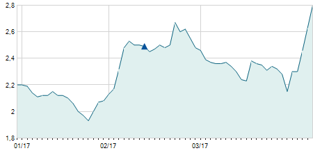 | 17/01/2023 | +0,63 / +6,92% | 9,72 | 9,73 | 9,72 | 9,73 | 9,73 | 8,39 | 300 |   |