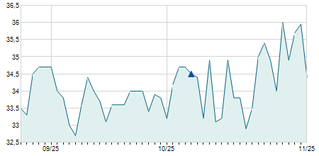 | 09/05/2025 | -0,25 / -0,90% | 27,50 | 27,70 | 27,50 | 27,55 | 27,54 | 26,42 | 35.300 |   |