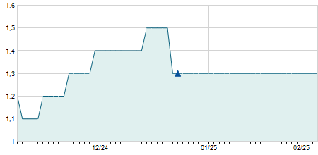 | 31/08/2016 | -0,60 / -1,44% | 41,90 | 41,90 | 41,00 | 41,00 | 41,21 | 17,53 | 35.500 |   |