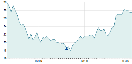 | 10/01/2020 | +0,20 / +0,81% | 26,20 | 26,20 | 24,50 | 24,80 | 24,54 | 13,37 | 11.900 |   |