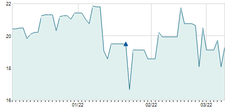 | 22/02/2019 | 0,00 / 0,00% | 19,70 | 19,70 | 19,70 | 19,70 | 19,70 | 15,10 | 0 |   |