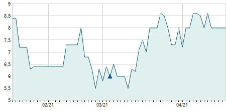 | 03/11/2017 | +0,05 / +0,41% | 12,00 | 12,45 | 12,00 | 12,30 | 12,28 | 10,28 | 272.680 |   |