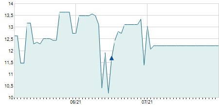 | 05/08/2025 | -0,30 / -2,26% | 13,45 | 13,45 | 12,70 | 13,00 | 13,10 | 13,00 | 1.324.600 |   |