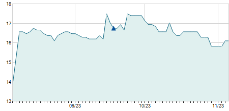 | 27/08/2025 | +1,00 / +6,94% | 14,50 | 15,40 | 14,40 | 15,40 | 15,12 | 15,40 | 2.722.600 |   |