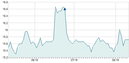 | 01/09/2017 | +0,05 / +0,32% | 15,85 | 15,85 | 15,50 | 15,75 | 15,67 | 13,17 | 108.930 |   |