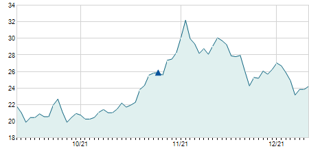 Giá đóng cửa ngày 30/12/2021