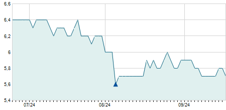 | 27/08/2014 | -0,60 / -7,69% | 7,70 | 7,70 | 7,20 | 7,20 | 7,20 | 7,20 | 1.500 |   |
