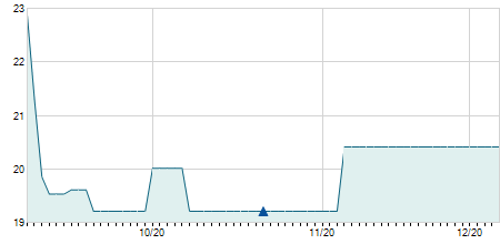 | 23/06/2023 | +1,80 / +9,42% | 20,90 | 20,90 | 20,90 | 20,90 | 20,90 | 17,31 | 2.200 |   |