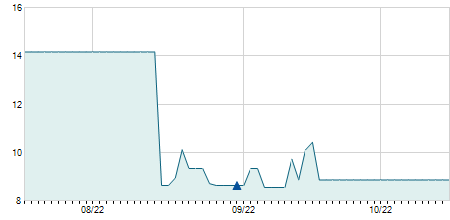 | 17/09/2012 | -0,60 / -6,74% | 8,30 | 9,10 | 8,30 | 8,30 | 8,30 | 2,78 | 10.200 |   |