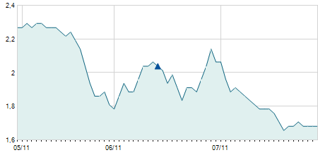 -0,80 / -5,03%
