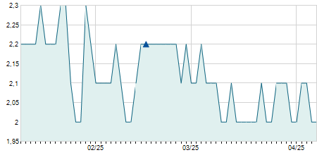 | 23/03/2022 | -0,20 / -0,37% | 53,90 | 54,00 | 53,70 | 54,00 | 53,90 | 30,44 | 44.900 |   |