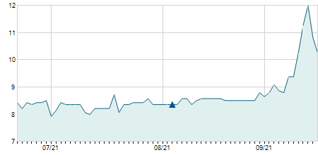 | 11/08/2025 | +0,80 / +6,67% | 12,75 | 12,80 | 12,05 | 12,80 | 12,70 | 11,96 | 16.000 |   |