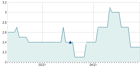 -0,70 / -4,61%