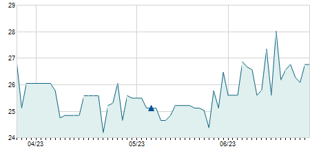 | 23/05/2024 | +0,30 / +1,46% | 20,80 | 20,80 | 20,80 | 20,80 | 20,80 | 17,33 | 100 |   |