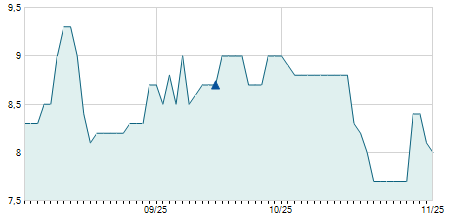| 31/03/2022 | -4,20 / -2,87% | 146,20 | 149,00 | 142,00 | 142,00 | 144,56 | 57,80 | 494.100 |   |