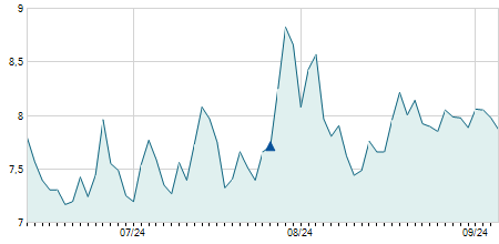 | 09/05/2018 | +0,40 / +0,92% | 43,40 | 44,80 | 42,70 | 44,00 | 43,42 | 10,18 | 10.900 |   |