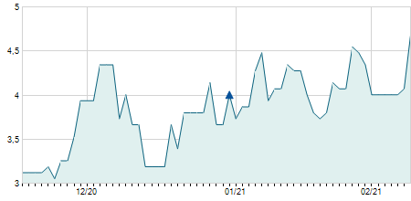 | 02/04/2018 | -0,70 / -1,05% | 66,00 | 67,00 | 65,00 | 66,10 | 65,50 | 10,19 | 3.600 |   |