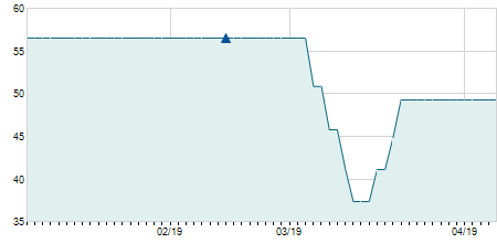 | 19/03/2018 | 0,00 / 0,00% | 64,00 | 64,90 | 63,70 | 64,90 | 63,94 | 10,00 | 4.500 |   |