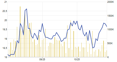 | 18/09/2025 | +0,10 / +1,52% | 6,60 | 6,70 | 6,50 | 6,70 | 6,59 | 6,70 | 416.000 |   |