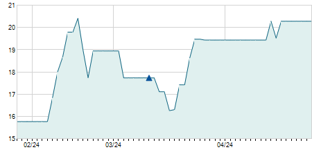 | 17/10/2023 | +2,00 / +10,00% | 22,00 | 22,00 | 22,00 | 22,00 | 22,00 | 18,25 | 100 |   |