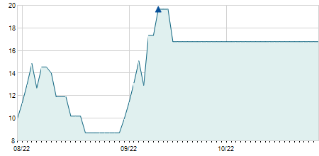 | 16/07/2021 | +0,35 / +0,75% | 46,95 | 47,90 | 46,95 | 47,30 | 47,12 | 38,59 | 17.000 |   |