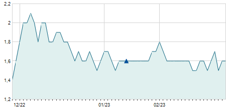 | 26/10/2015 | -0,60 / -1,49% | 39,80 | 39,80 | 39,80 | 39,80 | 39,80 | 21,63 | 1.200 |   |