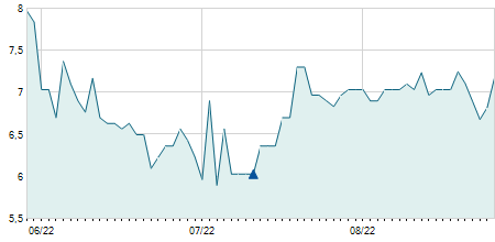 | 28/03/2016 | +4,50 / +6,77% | 65,50 | 71,00 | 65,50 | 71,00 | 69,55 | 38,58 | 186.250 |   |