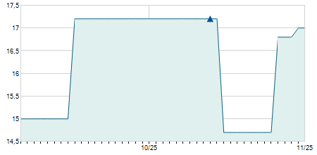 | 16/09/2019 | -1,50 / -2,13% | 71,90 | 71,90 | 69,00 | 69,00 | 70,45 | 54,04 | 50 |   |