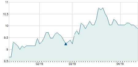 | 14/04/2020 | 0,00 / 0,00% | 61,90 | 61,90 | 61,90 | 61,90 | 61,90 | 19,71 | 9.000 |   |