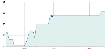 | 01/10/2018 | +0,60 / +2,80% | 22,00 | 22,00 | 22,00 | 22,00 | 22,00 | 19,30 | 10.000 |   |
