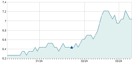 | 09/09/2021 | 0,00 / 0,00% | 24,40 | 24,40 | 24,30 | 24,30 | 24,40 | 23,11 | 600 |   |