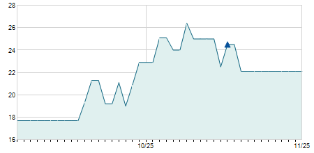 | 15/11/2016 | 0,00 / 0,00% | 29,00 | 29,00 | 27,60 | 28,50 | 28,32 | 5,89 | 1.300 |   |