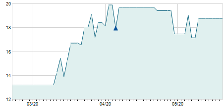| 06/09/2016 | +1,70 / +5,80% | 29,30 | 31,50 | 29,30 | 31,00 | 30,12 | 6,40 | 33.800 |   |
