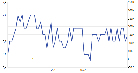 -0,70 / -4,58%