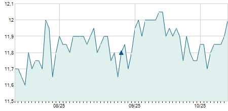 | 30/05/2022 | -0,90 / -7,14% | 11,70 | 11,70 | 11,70 | 11,70 | 11,70 | 11,41 | 100 |   |