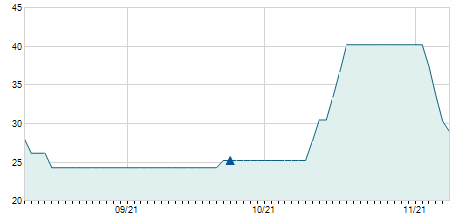 | 30/09/2022 | 0,00 / 0,00% | 19,90 | 19,90 | 19,90 | 19,90 | 19,90 | 19,90 | 0 |   |